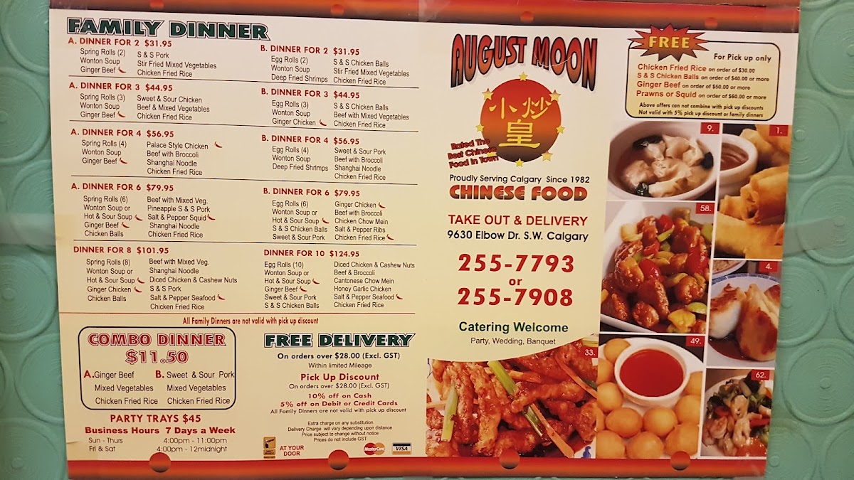 Welcome to August Moon Calgary, a beloved establishment nestled at 9630 Elbow Dr SW in Calgary, known for its exceptional Chinese cuisine. This family-owned gem has become a favorite for takeout, offering a diverse menu that delights every palate.